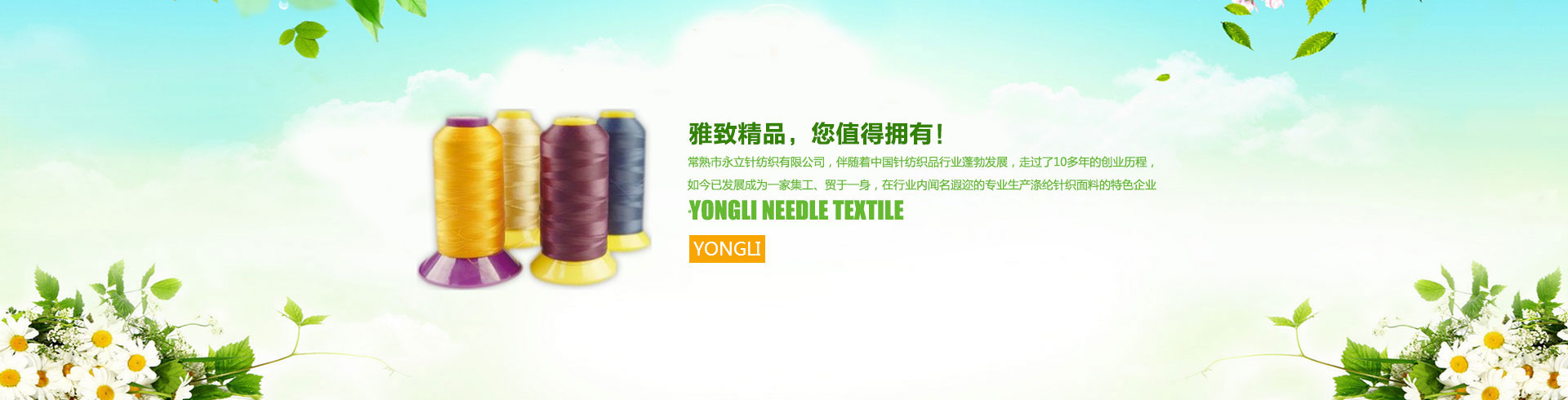 公司成立于1997年,坐落于風(fēng)景秀麗的虞山腳下,位于中國經(jīng)濟(jì)最活躍的版圖--長(zhǎng)江三角洲經(jīng)濟(jì)技術(shù)開發(fā)區(qū)的黃金地段上,常熟市永立針紡織有限公司,伴隨著中國針紡織品行業(yè)蓬勃發(fā)展,走過了10多年的創(chuàng)業(yè)歷程,如今已發(fā)展成為一家集工、貿(mào)于一身,在行業(yè)內(nèi)聞名遐邇的專業(yè)生產(chǎn)滌綸針織面料的特色企業(yè)。本公司擁有來自臺(tái)灣的先進(jìn)制造設(shè)備,以雙面小提花機(jī)為主的34寸(16--45針)雙面緯編機(jī)50臺(tái)、34寸(20--50針)單面開幅機(jī)9臺(tái)、36寸 22針德國邁耶OVJE雙面電腦大提花機(jī)6臺(tái)及其他先進(jìn)設(shè)備。憑借著一流的設(shè)備,以及“人無我有,人有我好,人好我轉(zhuǎn)”的經(jīng)營理念,常熟永立一直致力于滌綸面料的創(chuàng)新...